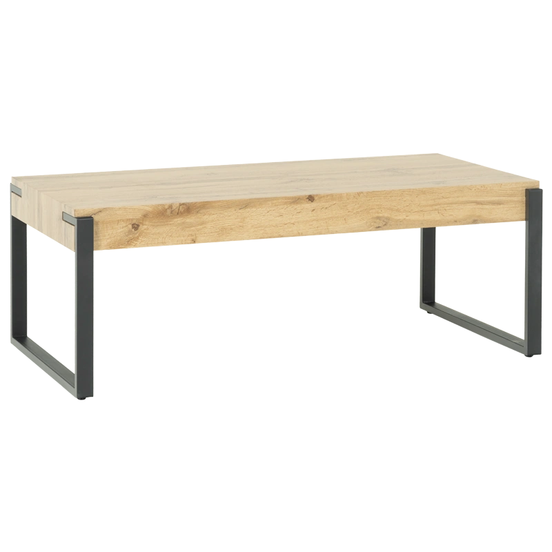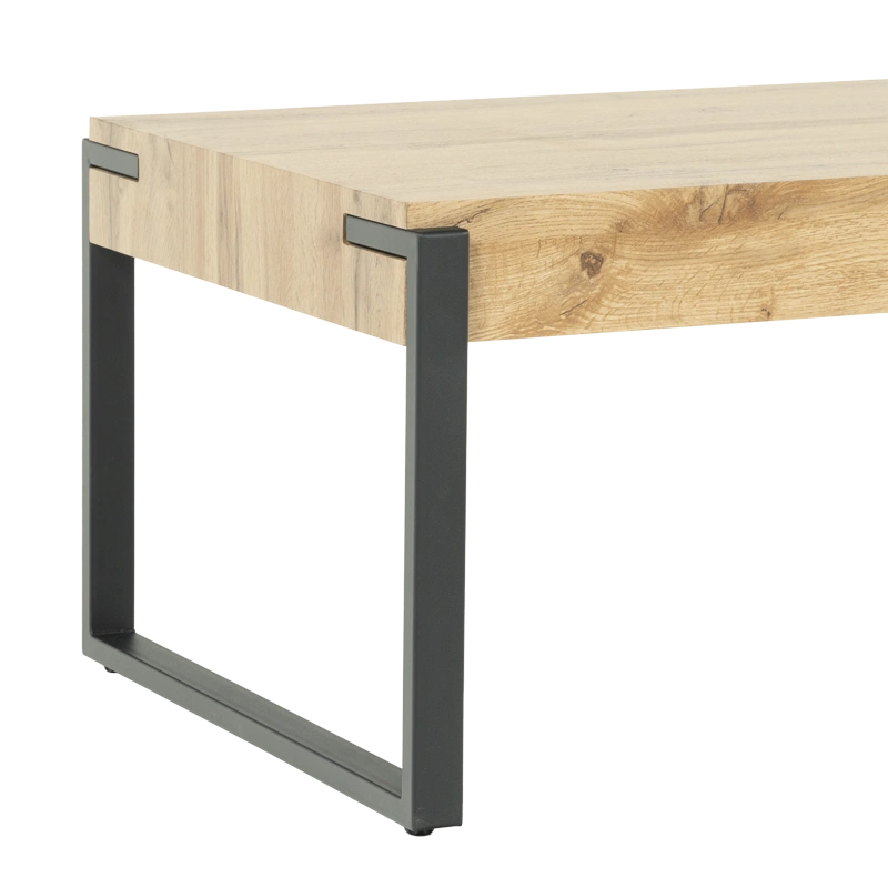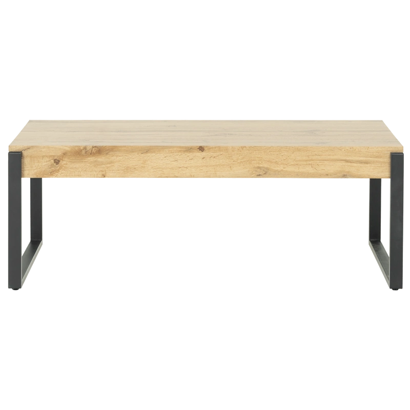 Масичката за кафе LUND импресионира со својата елегантна едноставност и хармонична комбинација на материјали. Површината со дебелина од 10 см е изработена од медијапан во топол дабов декор, обезбедувајќи природен и стилски изглед.Стабилната метална основа со завршна обработка со прашкасто премачкување додава модерен акцент. Нејзиниот дизајн совршено се вклопува во скандинавските и современите ентериери, комбинирајќи естетика и практичност.