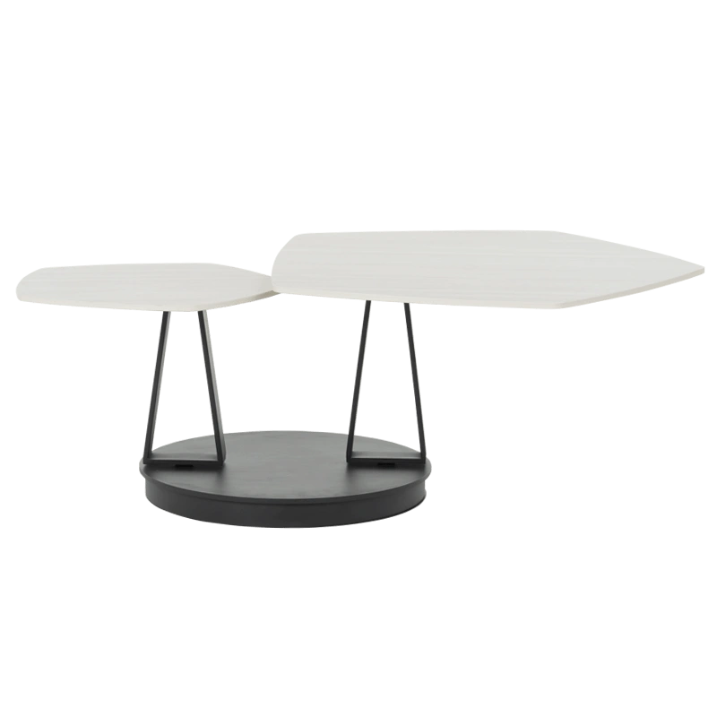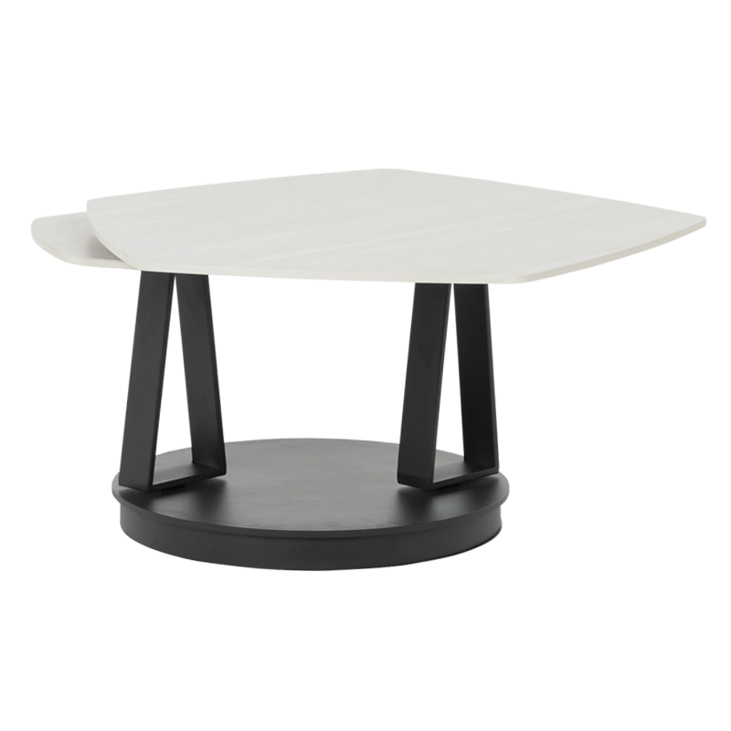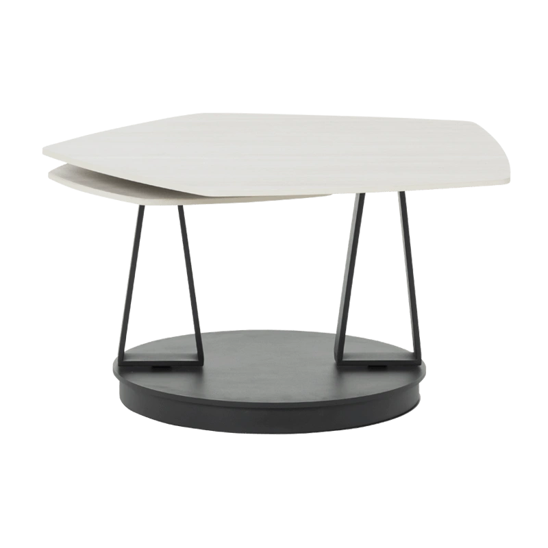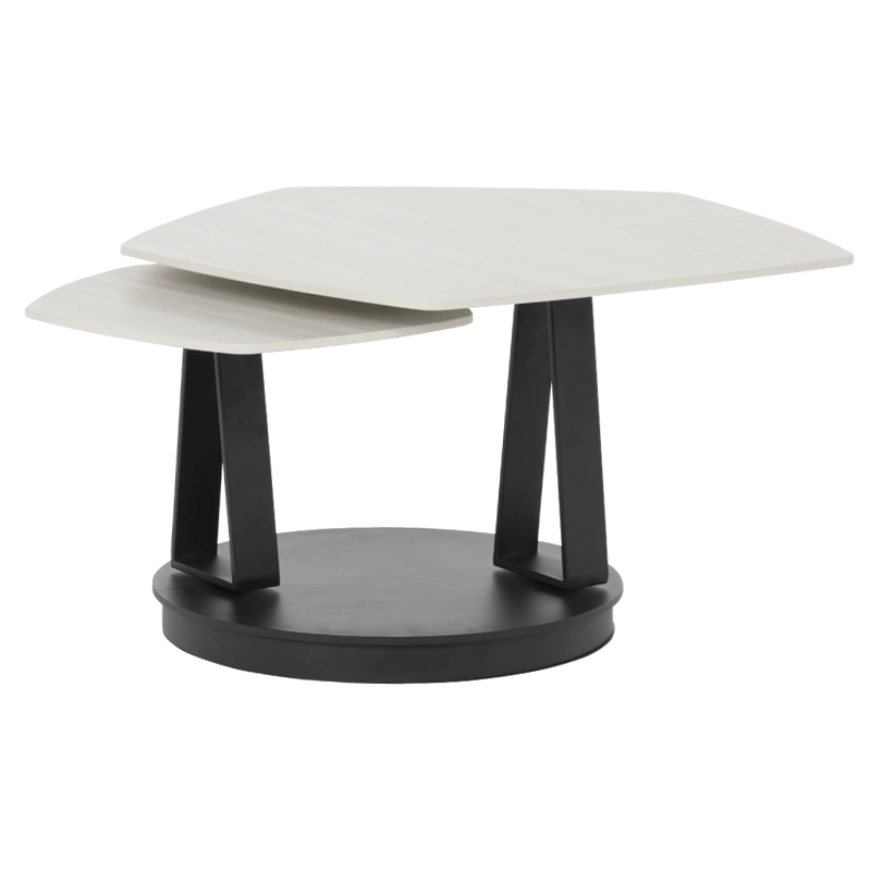Масичката за кафе ORTIZ импресионира со софистицирана елеганција и функционален дизајн. Горните плочи, изработени од висококвалитетна керамика со дебелина од 12 мм, се во топла боја на јавор, што додава природна мекост и современ карактер на моделот. Нестандардната пентагонална форма внесува чувство на динамичност и уметнички акцент, додека основата од метал со прашкасто обложување обезбедува стабилност и визуелна хармонија. Благодарение на иновативниот механизам за вртење, масичката за кафе ORTIZ се трансформира со леснотија, нудејќи флексибилност и препознатливо присуство во секој модерен ентериер.