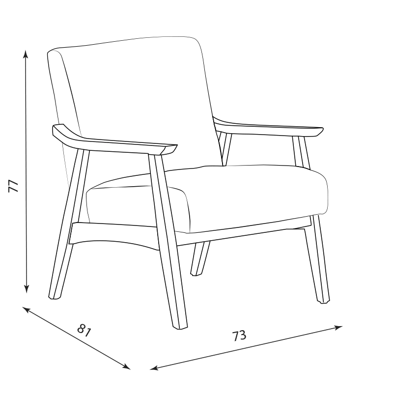 MAURO е удобна фотелја од ткаенина со дрвени ногарки и потпирачи за раце. Нејзиниот дизајн ќе внесе чувство на удобност во секоја просторија.