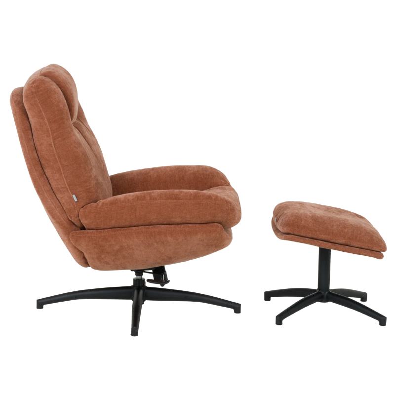 Фотелјата PORTO со табуретка за нозе е симбол на модерна удобност и софистициран дизајн. Нуди не само ротација од 360 степени, туку и функција за нишање, обезбедувајќи уникатно чувство на релаксација. Висококвалитетната ткаенина во две текстури создава елегантна комбинација, давајќи ѝ на фотелјата неповторлив стил и удобност. Основата, изработена од прашкасто обложен метал во црна боја, го нагласува нејзиниот современ карактер и додава дополнителна стабилност. PORTO е совршен избор за оние кои ја ценат софистицираноста и удобноста во ентериерот.